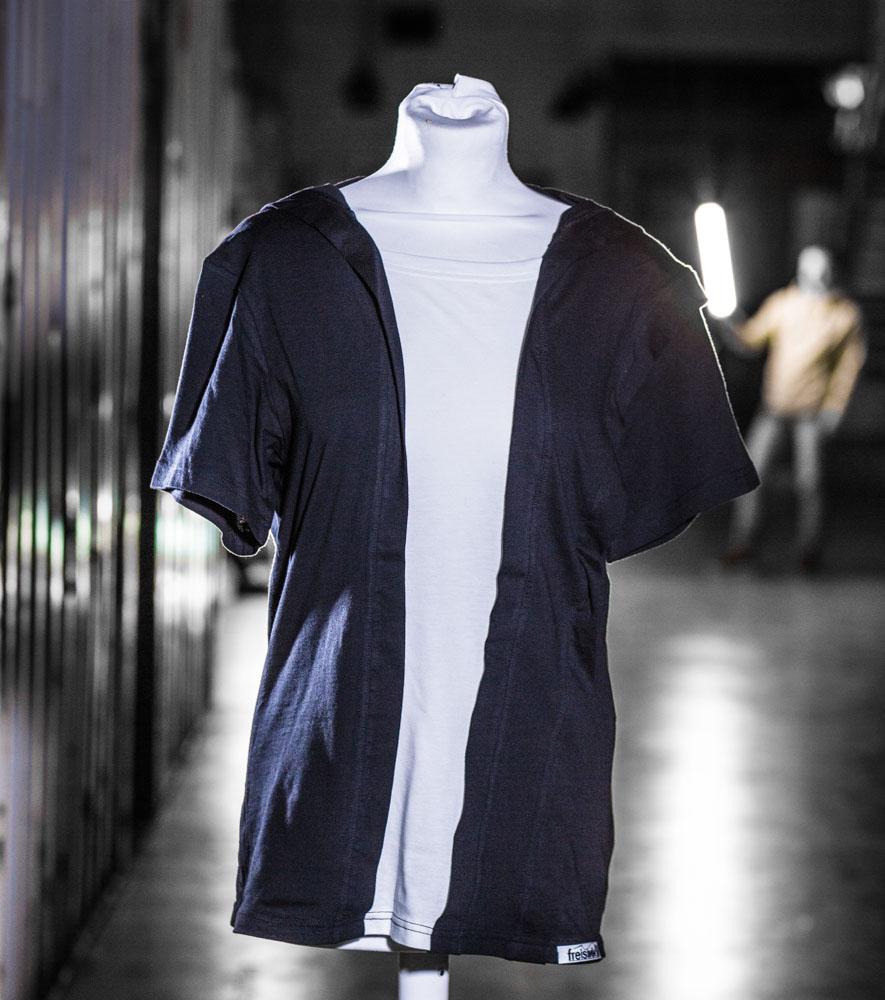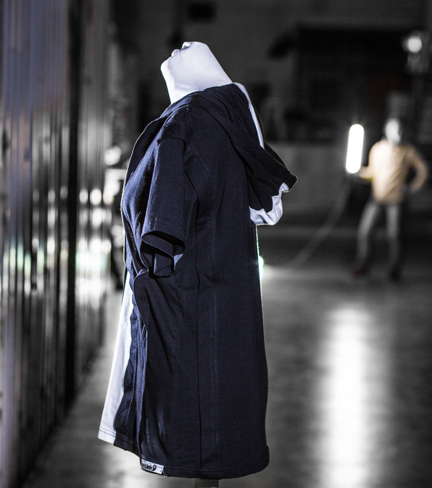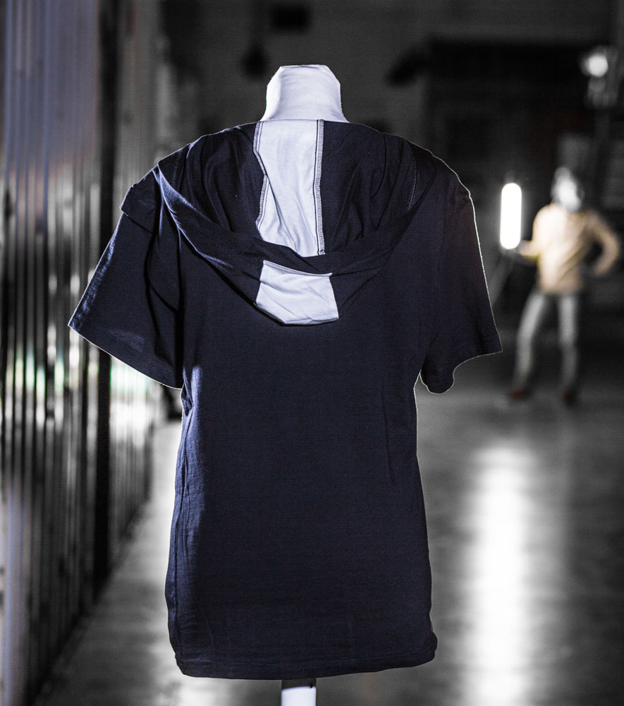 T-Shirt mit Kaputze und einem ungewöhlichen Abschluss.