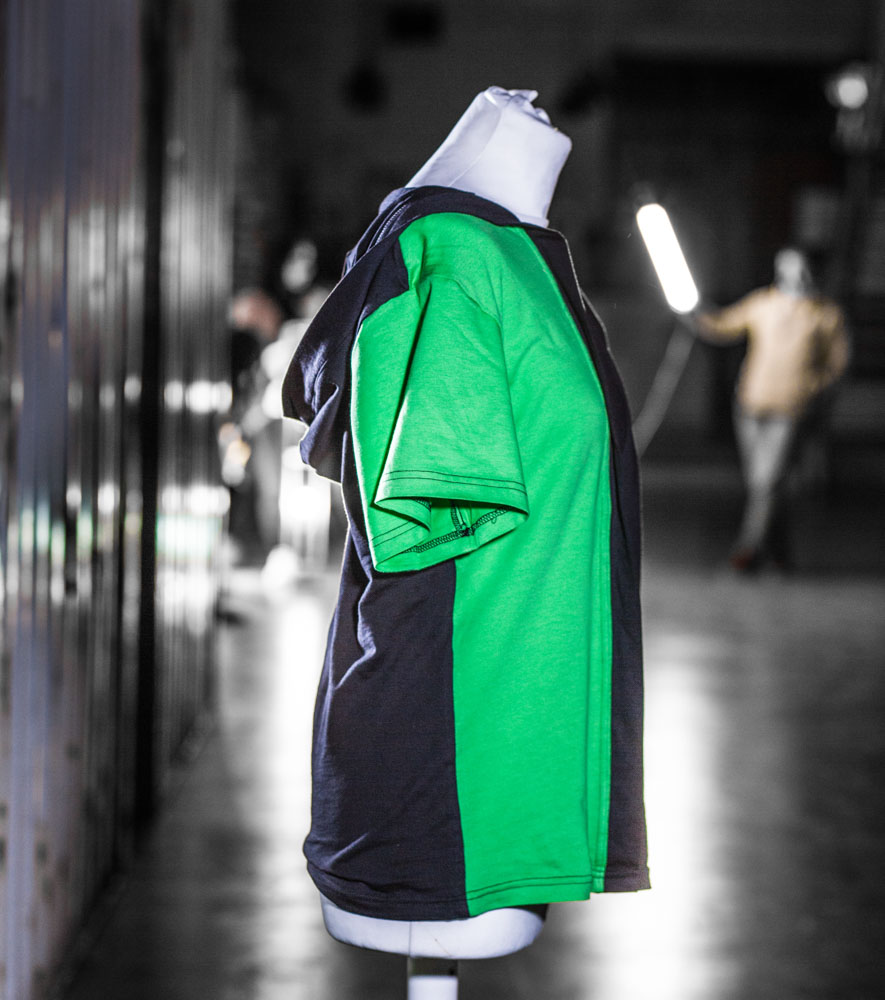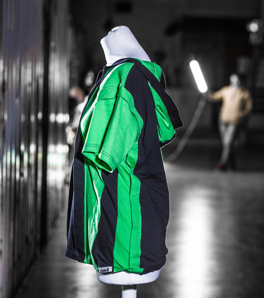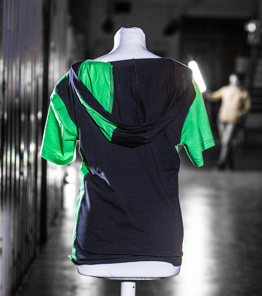 T-Shirt mit Kaputze und einem ungewöhlichen Abschluss.