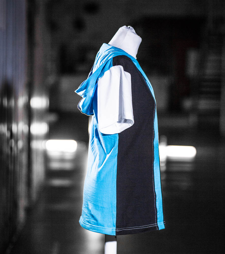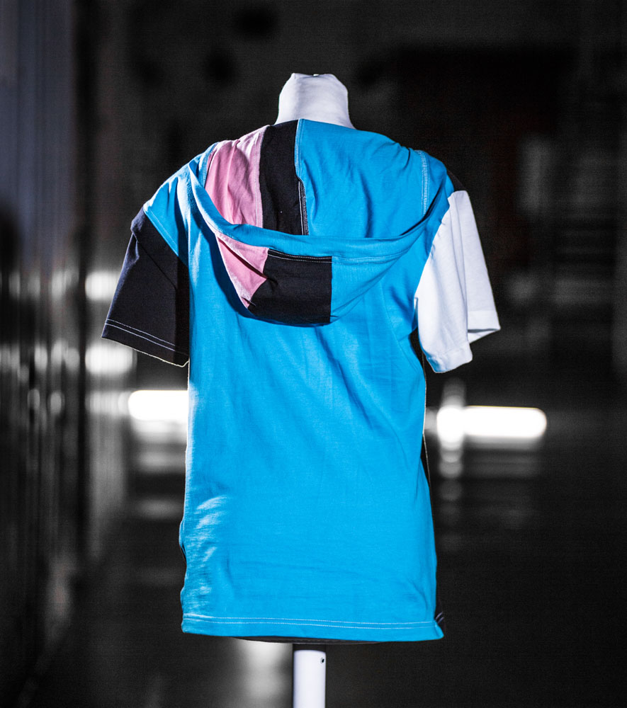T-Shirt mit Kaputze und einem ungewöhlichen Abschluss.