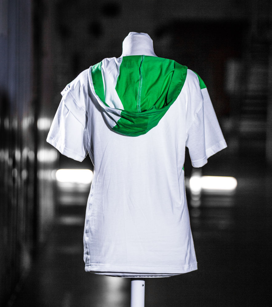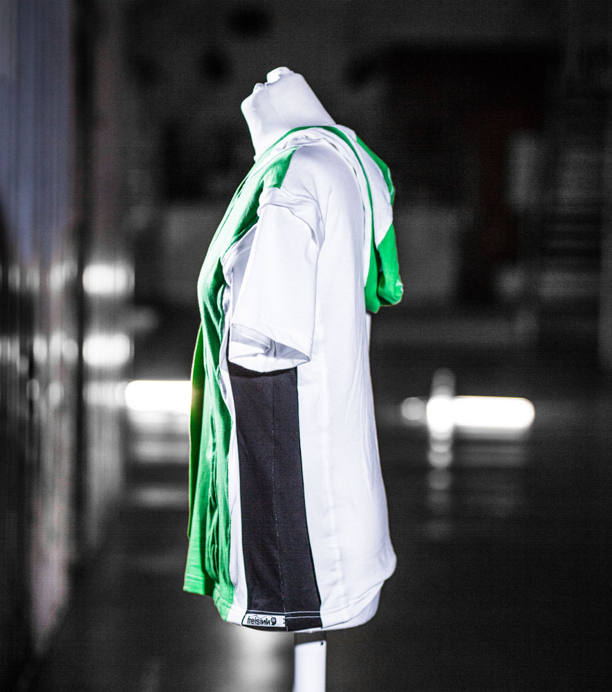T-Shirt mit Kaputze und einem ungewöhlichen Abschluss.
