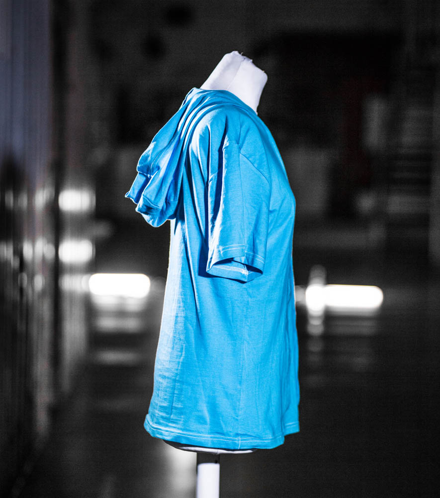 T-Shirt mit Kaputze und einem ungewöhlichen Abschluss.