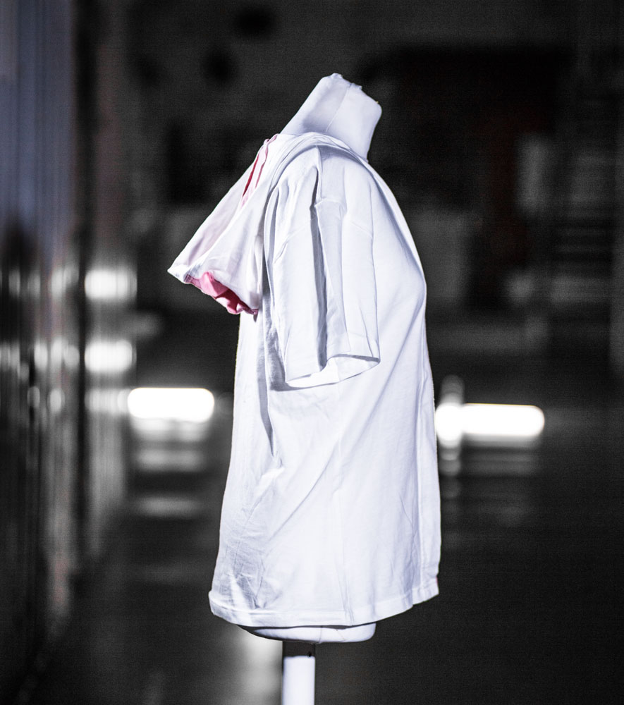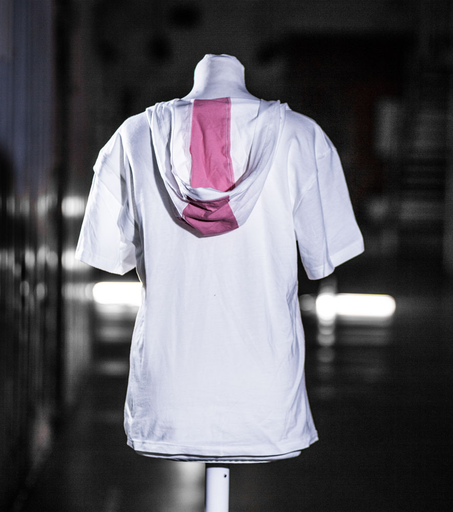 T-Shirt mit Kaputze und einem ungewöhlichen Abschluss.