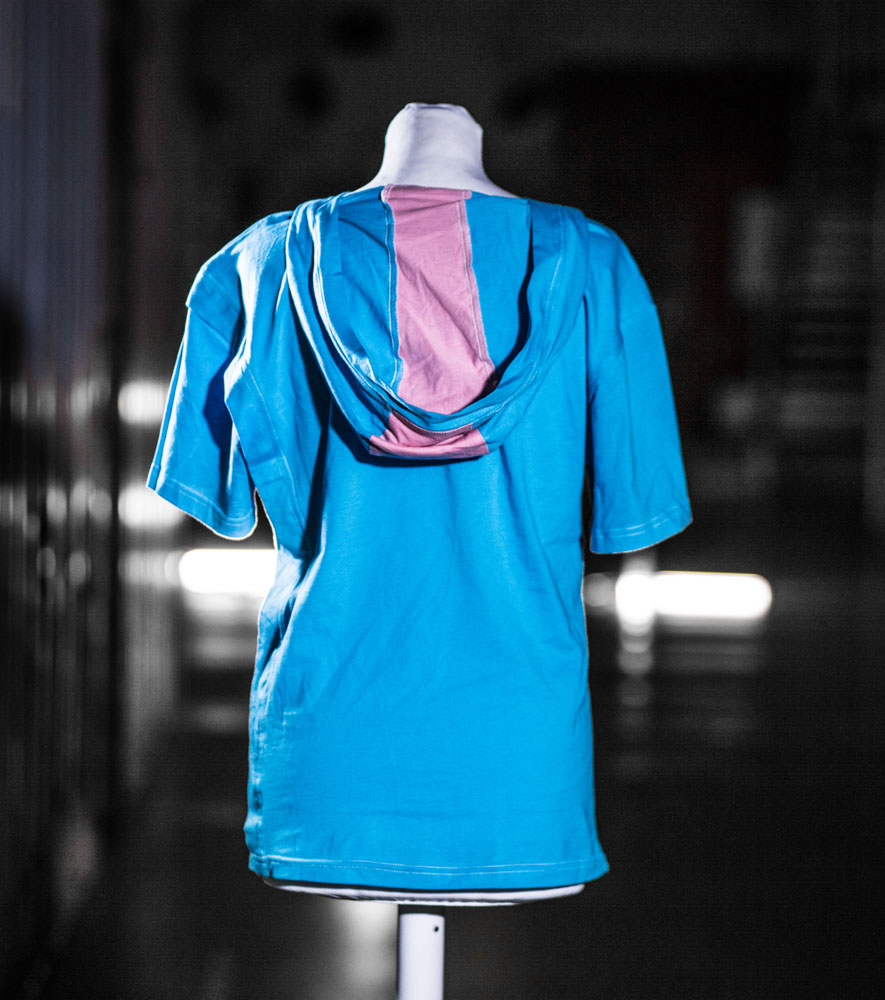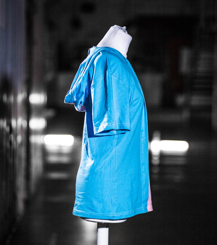 T-Shirt mit Kaputze und einem ungewöhlichen Abschluss.